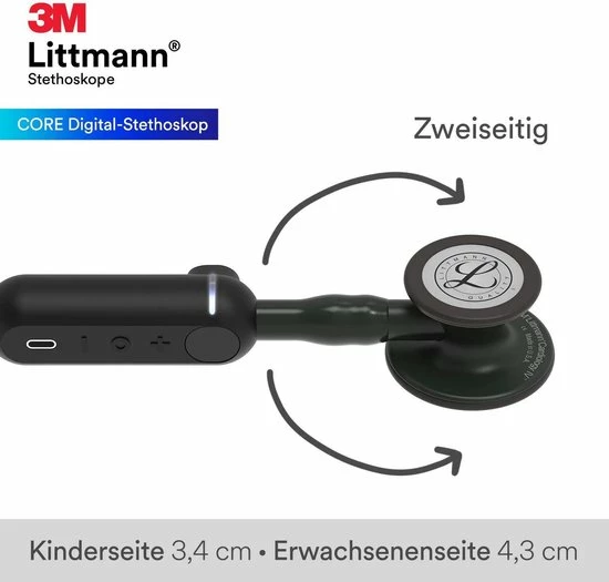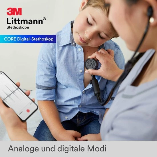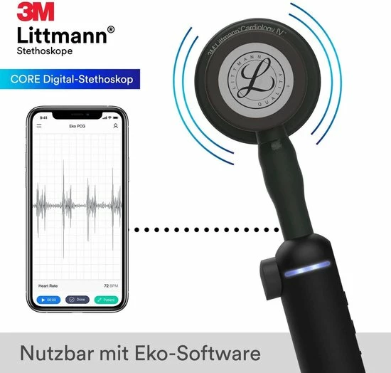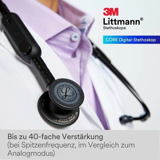 De nieuwe 3M Littmann Electronische stethoscoop nu uit voorraad leverbaar. De Littmann Core Digital stethoscoop bied het beste van 2 kanten, gericht op het akoestiek van de Cardiology IV stethoscoop en de digitale technologie van het EKO systeem. Functies zoals tot 40x versterking en actieve ruisonderdrukking helpen je met meer zelfvertrouwen auscultaties uit te voeren. De 3M Littmann CORE stethoscoop maakt verbinding met Eko-software op een smartapparaat voor het visualiseren, vastleggen en delen van gegevens.