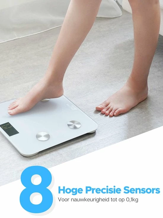4 zeer nauwkeurige sensoren die uw lichaamswaarden met een onge?venaarde nauwkeurigheid meten. Met een nauwkeurigheid tot 0,1 kg zorgen deze sensoren voor een zeer accurate meting.