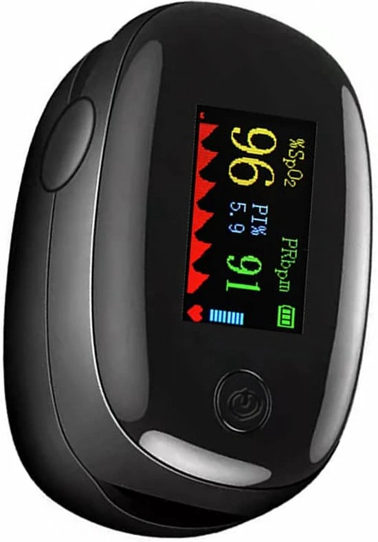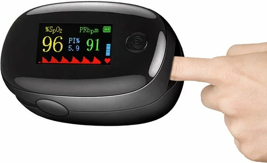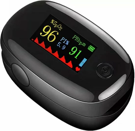 De saturatiemeter meet de zuurstofverzadiging van het bloed (SpO2%) en hartslagfrequentie. Zuurstofverzadiging en hartslagfrequentie kunnen in staaf- of golfdiagram worden weergegeven. Daarnaast draait de OLED-display 360? mee voor optimale leesbaarheid van de meetgegevens.