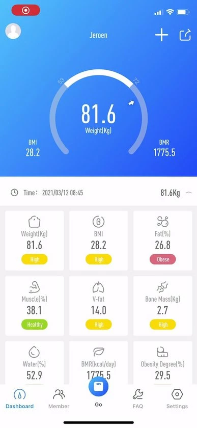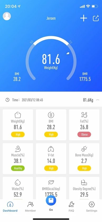 - Daar vind je dus ook de gegevens van je lichaamsanalyse terug en zie je snel of er veranderingen plaatsvinden in bijvoorbeeld je gewicht of spiermassa. Dat is prettig als je met een persoonlijk lichaamsdoel bezig bent.