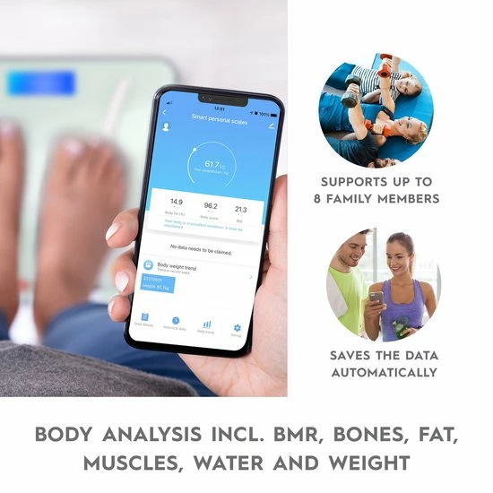 De alpina Smart home slimme personenweegschaal voert een volledige lichaamsanalyse uit. Zo kijkt de weegschaal niet alleen naar gewicht en vetpercentage, maar ook naar je BMR, het gewicht van je botten, spiermassa en watergewicht. Zo kan het bijvoorbeeld zijn dat je binnen een week niet je gewichtsdoel bereikt hebt, maar je vetpercentage wel drastisch gedaald is en je spiermassa bijvoorbeeld gestegen. Daarnaast kun je in de alpina Smart home app ook een progressie rapport in zien om bij te houden hoe je fitness journey verloopt.