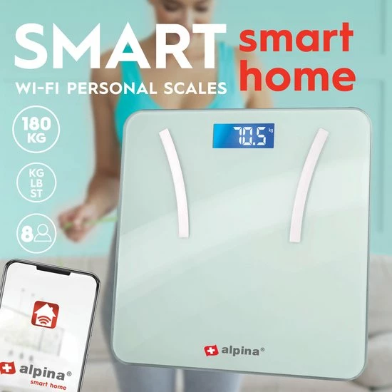 Het fijne aan de alpina Smart home slimme personenweegschaal is dat je jouw progressie in de alpina Smart home app bij kunt houden. Deze download je simpelweg voor Android apparaten in de Google Play Store en voor Apple smartphones in de App Store. Log vervolgens in of maak een nieuw account aan. In de app voeg je de weegschaal gemakkelijk toe door op het ‘+’ icoontje te drukken. De weegschaal staat in verbinding met jouw wifi router, hier heb je geen aanvullende hub voor nodig. Ook je wifi-netwerk en het wachtwoord kun je in de alpina Smart home app bevestigen. Wanneer de app volledig geïnstalleerd is en in verbinding staat met de slimme weegschaal kun je tot wel 8 gebruikers aan de app toevoegen. Zo kan iedereen in het gezin zijn of haar voortgang bijhouden en kun je elkaar extra motiveren.