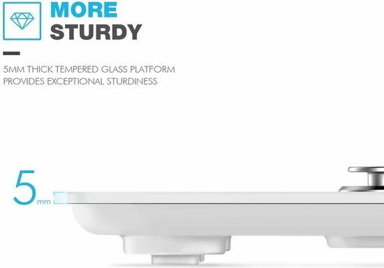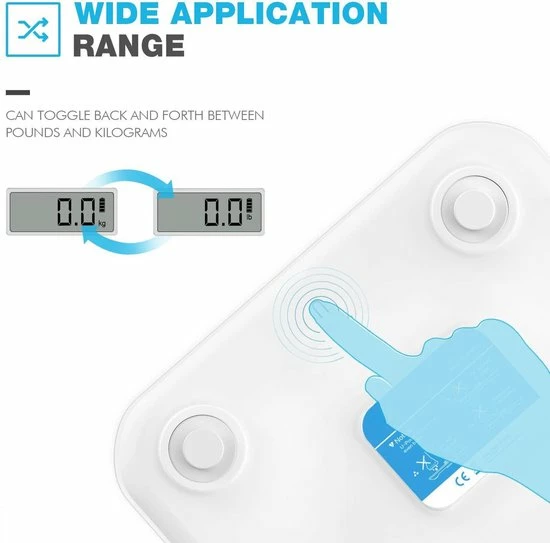 ✔ Self-Powered: er zijn voor deze weegschaal geen batterijen nodig. Eén keer op de knop drukken en er is genoeg stroom om de weegschaal te gebruiken.