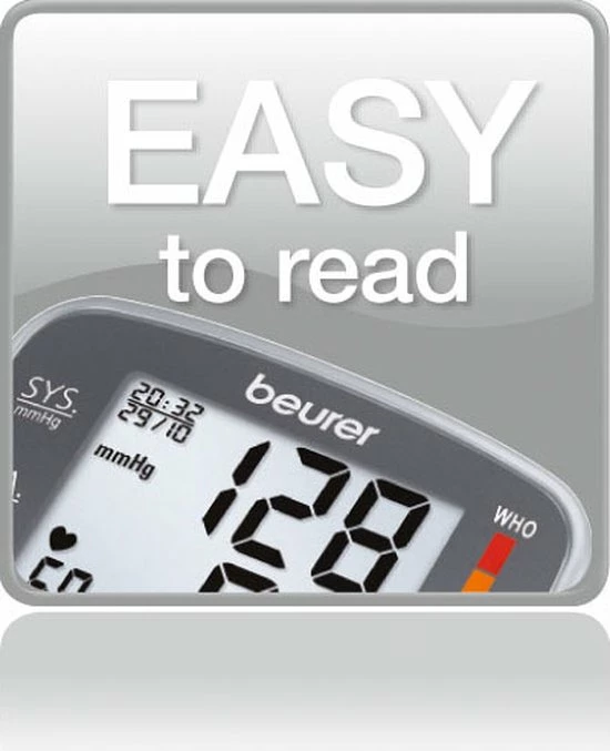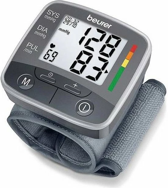 De Beurer BC32 is een volautomatische bloeddrukmeter die metingen verricht via de pols. Het duidelijke display heeft de meting van de bloeddruk en de hartslag weer. Ook waarschuwt hij in het geval van een hartritme stoornis. Er is ruimte voor het opslaan van metingen voor 2 gebruikers, 60 geheugenplaatsen per persoon.