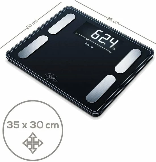 De BF410 van Beurer is een diagnostische personenweegschaal. De weegschaal is gemaakt van extra sterk veiligheidsglas van 8mm dik. De metingen zijn goed af te lezen door het XL display en met een cijfergrootte van 45mm.