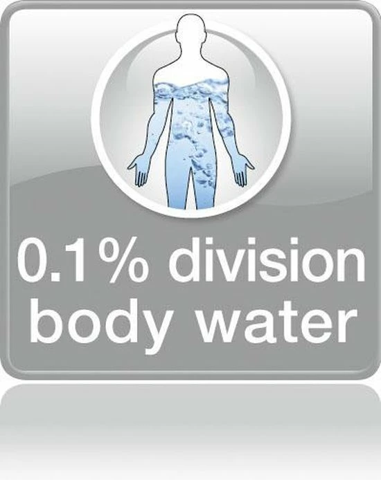 Indeling: 0,1% voor vet, vocht en spiermassa en per 100gr voor gewicht en