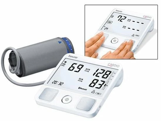 E?n apparaat – 2 functies: de bloeddrukmeter BM 93 beschikt ook over een ECG-vingersensor, die niet alleen bloeddrukmetingen mogelijk maakt, maar ook een elektrocardiogram opname van 30 seconden kan maken.