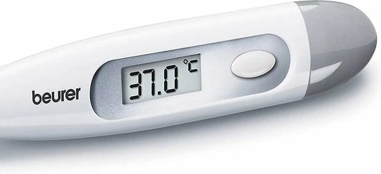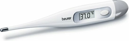 Eenvoudig te bedienen thermometer met een snelle meting binnen 10 seconden. De Beurer FT09 Thermometer is een thermometer die meet via contactmeting. Je kunt het verloop van de koorts nauwkeurig in de gaten houden met regelmatige metingen. Deze Beurer FT09 heeft een duidelijke display, 1 geheugenplaats en geeft een signaal wanneer de meting klaar is. Waterproof en hygi?nisch, kan goed gedesinfecteerd worden. Het display is makkelijk afleesbaar. Na gebruik schakelt hij automatisch uit.