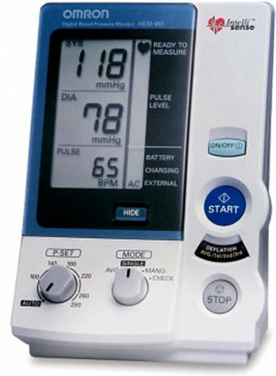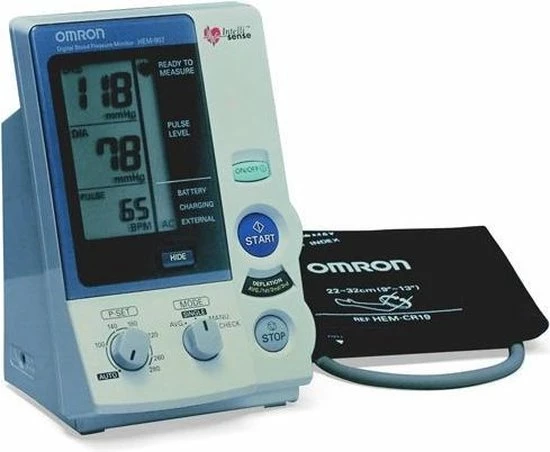 De Omron HEM907 is een bovenarm bloeddrukmeter die ontworpen is voor professioneel gebruik. Metingen worden verricht volgens de Oscillometrische en de Korotkoff (stethoscoop wordt er niet bijgeleverd) methode. De meter wordt vaak in praktijken, ziekenhuizen en klinieken gebruikt om betrouwbaar de bloeddruk op te nemen. Natuurlijk kan de Omron HEM907 ook gewoon thuis gebruikt worden.
