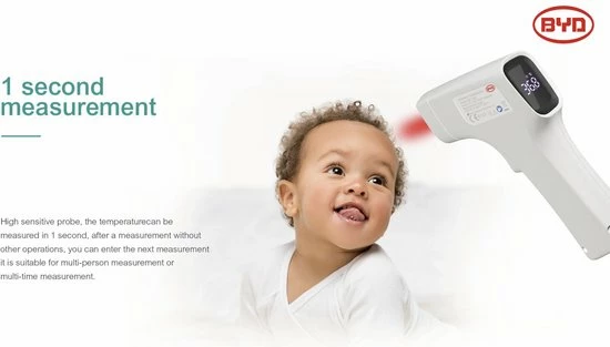 De Infrarood thermometer meet de lichaamstemperatuur door de warmtestraling van het voorhoofd te meten. Richt de thermometer op het voorhoofd met een tussenruimte van 2~3 cm, en houd de meter verticaal. Hierbij is het ook belangrijk dat er geen haren voor het voorhoofd hangen. Deze thermometer is uitermate geschikt voor medische doeleinden.