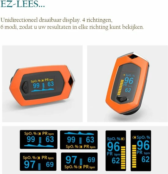 Pas het duidelijke grote OLED-scherm aan op de gewenste ori?ntatie en nummergrootte. Ook de wekker is verstelbaar. Geschikt voor medische professionals en thuisgebruik. Simpel, snel en accuraat.