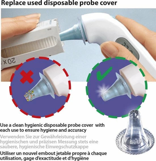De Braun Thermoscan 3-IRT3030 is een gemakkelijke oorthermometer en erg snel te gebruiken. Binnen 1 seconden wordt het meetresultaat weergeven op het LCD beeldscherm. De thermometer is geschikt voor het hele gezin zelfs voor pasgeborenen. Om het gebruik hygienisch te houden worden er BPA en Latexvrijen wegwerplensfilters meegeleverd. De meter geeft met piepjes aan of er een normale, verhoogde of hoge temperatuur wordt aangegeven. Waardoor meteen duidelijk is of iemand koorts heeft.