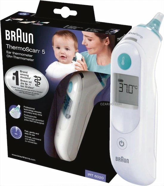 Met de IRT6020MNLA oorthermometer van Braun kunt u binnen enkele seconden de temperatuur in uw oor meten. Voorzien van ExacTemp technologie wat een eventueel koude-effect moet tegengaan.