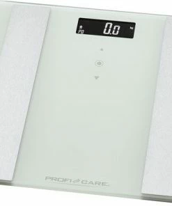 ProfiCare PC-PW 3007 FA 8-in-1 Elektronische glazen personenweegschaal met roestvrijstalen inzetstukken, multifunctioneel LCD-display, sensor-touch-bediening, wit