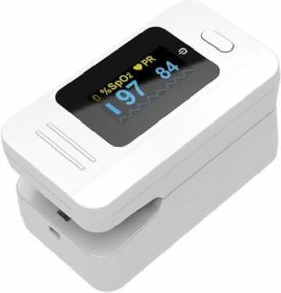 Dit compacte apparaatje meet snel het zuurstofgehalte in het bloed. Door de oximeter op de vinger te plaatsen wordt er snel een accuraat beeld van het zuurstofgehalte geschetst. De zuurstofmeter detecteert dit door zuurstofverzadiging metingen en slagader detecties uit te voeren.