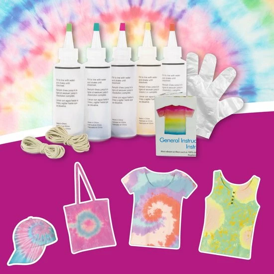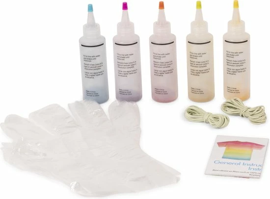 Meteen aan de slag met de complete tie dye kit in pasteltinten! Deze leuke trend van vroeger is terug van weggeweest. Het leuke hippiepatroon is super eenvoudig te maken met deze tie dye kit. Leuk voor jong en oud. Verf T-shirts, canvastassen of zelfs je sokken met de tie dye kit. Compleet met beschermende handschoenen, rubberen elastiekjes en een boekje met inspiratie. Verf tot 30 projecten met deze tie dye kit.