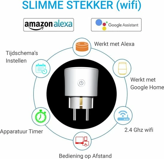 - Voice assistant. H? Alexa, zet het koffiezetapparaat aan! De slimme stekker is te koppelen met Siri, Google Home en Amazon Alexa en zo te gebruiken met spraakcommando?s.
