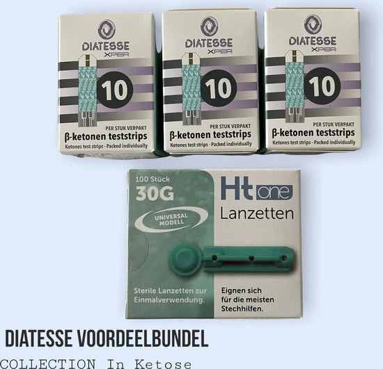 | Verpakkingsinhoud | 30, ketonen, strips, 100, lancetten, 30G |