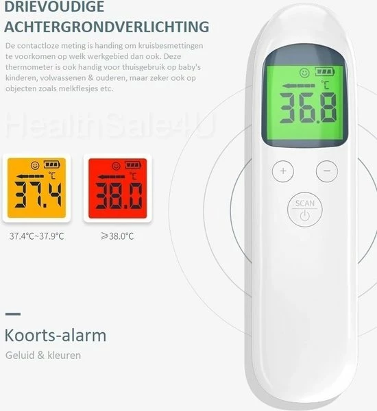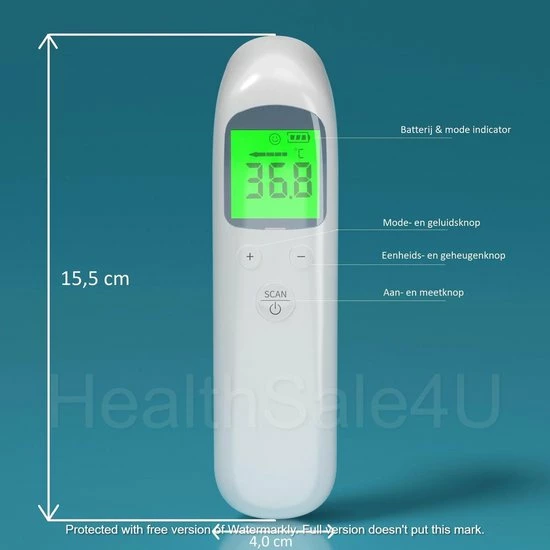 Met de infrarood thermometer meet je je lichaamstemperatuur binnen 1 seconden.