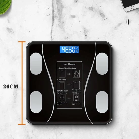Ga op de geavanceerde Bluetooth Weegschaal staan en je ziet direct op je telefoon hoe je er lichamelijk voor staat. Ontvang tot wel twintig belangrijke parameters over de gezondheid van jouw lichaam. Deze weegschaal is perfect voor mensen die willen afvallen of voor mensen die hun gezondheid beter in de gaten willen gaan houden.