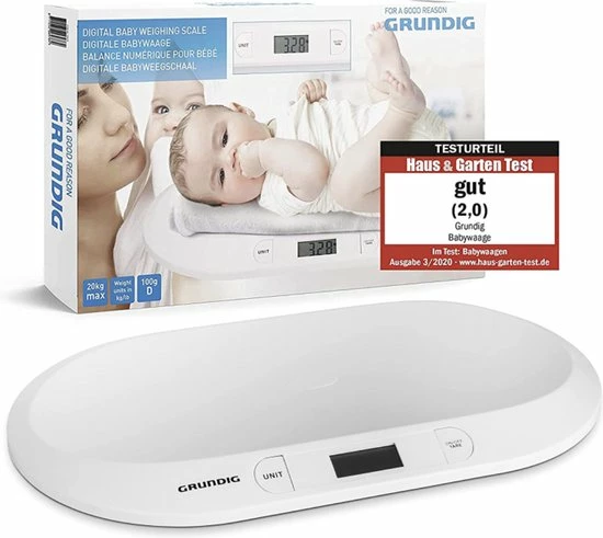 - Zeer nauwkeurig: de weegschaal geeft het gewicht met een nauwkeurigheid van +/- 5 g aan. Je kunt het voor peuters tot 20 kilo gebruiken. Deze babyweegschaal helpt je vanaf de eerste levensdag van het kind om het gewicht ook buiten de dokterspraktijk te controleren.