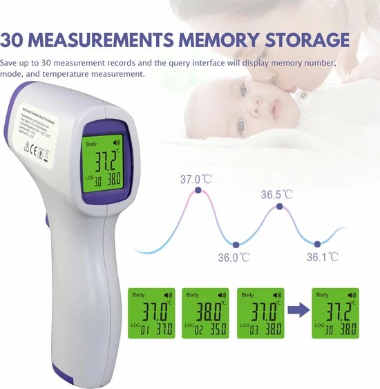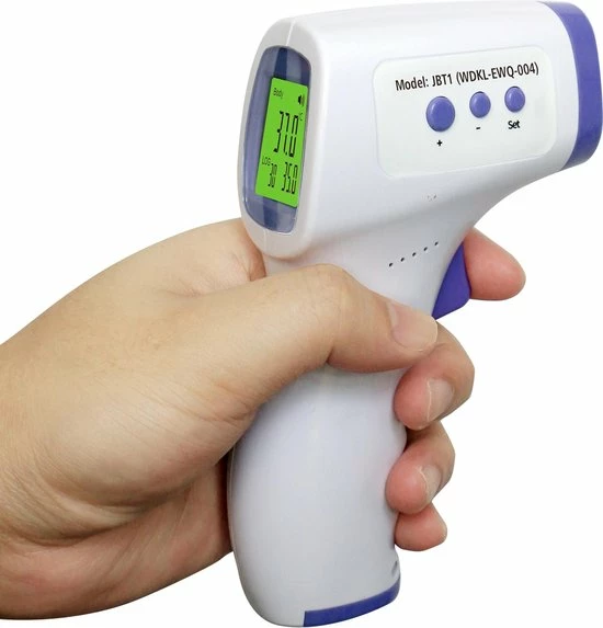 – Meetmethode; non-contact infrarood meting via het voorhoofd.
