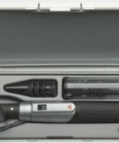 De Heine mini 3000 diagnostische otoscoop set is een complete set voorzien van een batterij handvat en geleverd in een hardcase koffer.