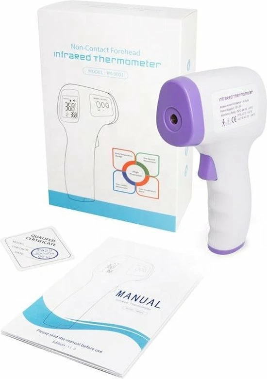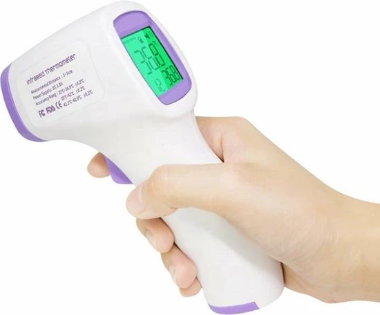 Medische infrarood thermometer: Om een betrouwbare, snelle en pijnloze meting van de lichaamstemperatuur te meten, bij u zelf of bij iemand anders is deze infrarood thermometer perfect geschikt. Deze infrarood thermometer is geschikt voor volwassen en kinderen. Binnen een seconden meet die uw lichaamstemperatuur en kunt u zien of u koorts heeft. De lichaamstemperatuur zal tevoorschijn komen op het LCD Display. Ook is deze thermometer geschikt voor in de medische sector. De thermometer heeft hier verschillende certificaten voor behaald. Met een mogelijke temperatuur afwijking van 0,2 graden is deze thermometer erg accuraat. LET OP: Dit geldt wel alleen wanneer de thermometer al minimaal 15 minuten aan de omgevingstempratuur is gewend buiten de verpakking. Deze legt nauwkeurig uit hoe u de thermometer moet gebruiken. De thermometer moet worden voorzien van twee AAA batterijen. (Deze zijn niet inbegrepen)