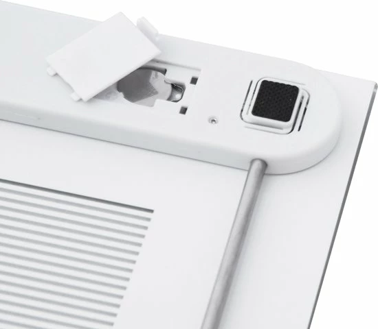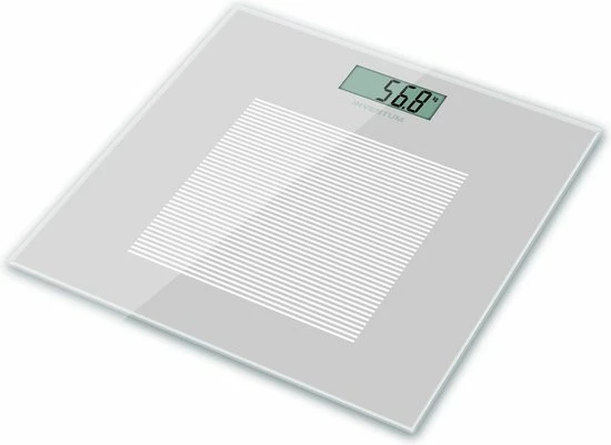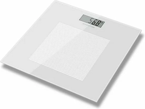 Kleur: wit Materiaal: glas Afmetingen: 30 x 30 x 2 cm (L x B x H) Weegcapaciteit tot 180 kg Gradaties met intervallen van 100 gram Eenvoudige “Step on” activatie Automatische uitschakeling Oppervlakte van gehard glas Groot LCD-scherm 4-punts weegsysteem Verwijderbare 1 x CR2032 Li-ion batterij (inclusief)