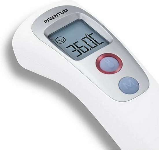 Met de Inventum TMC609 infrarood thermometer kun je naast je lichaamstemperatuur ook de omgevingstemperatuur en een objecttemperatuur meten. De lichaamstemperatuur kan contactloos via het voorhoofd gemeten worden. Binnen 1 seconden wordt de temperatuur getoond. Dit maakt de thermometer ideaal voor baby’s en kinderen. De thermometer is voorzien van een koortsindicatie en heeft 9 geheugenplaatsen.