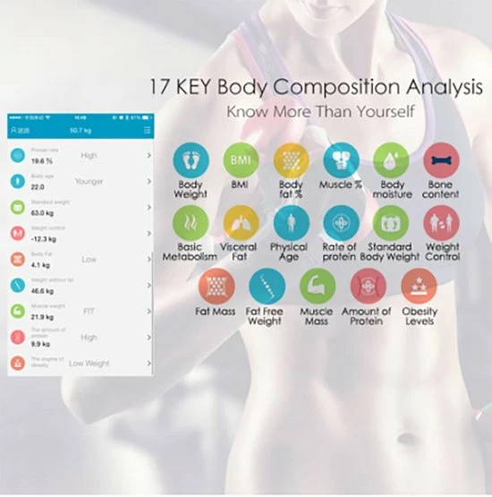 Dankzij de gratis applicatie is de weegschaal volledig in staat om je gewichtsdoelstellingen op een gezonde wijze te behalen. Vanaf nu is het mogelijk om je vitale gegevens direct en overal binnen de App te bekijken en managen, waardoor je eindelijk inzicht zult hebben in de ontwikkeling van bijvoorbeeld je vetpercentage, gewicht en spiermassa gedurende langere periodes.