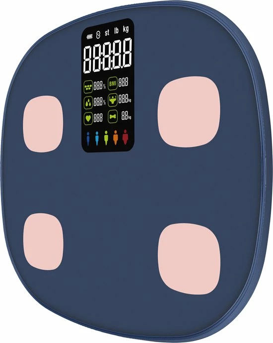 Op de slimme weegschaal zitten 4G sensoren die je lichaamssamenstelling analyseren door middel van de populaire en accurate methode ‘Bioelectrical Impendence Analyse’ (BIA). De weegschaal geeft onder andere de spier- en botmassa, het lichaamsvet en het vochtpercentage weer en helpt jou met gezond afvallen!