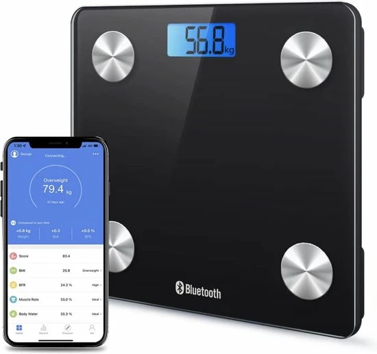 Wil je bijhouden hoeveel je weegt? Deze zwarte, digitale weegschaal van Lleazy helpt je daarbij. Je lichaamsgewicht kan namelijk veel zeggen over je gezondheid.