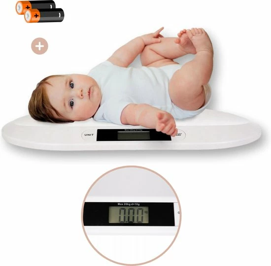 Je kunt baby?s en peuters tot 20 Kg wegen. Is het gewicht groter dan geeft het apparaat een overbelasting waarschuwing. Gebruik je de weegschaal niet dan zorgt de automatische uitschakeling ervoor dat de batterijen niet onnodig snel leegraken. De benodigde batterijen zijn eveneens meegeleverd.
