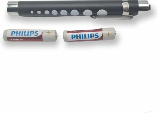 Deze penlight is ideaal voor diagnostisch onderzoek van het oog. Zo kan met dit medische onderzoekslampje de pupilreflex worden getest en neurologisch onderzoek worden uitgevoerd. Het ooglampje is voorzien van een clip waarmee de penlight eenvoudig aan een zak te bevestigen is. Ook zijn er twee Philips batterijen inbegrepen.