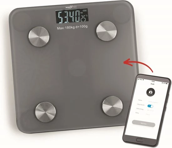 Om het nog overzichtelijker te maken is er zelfs een gratis bijbehorende gezondheidsapp. Namelijk de ??OKOK?? app. Die kun je downloaden op je tablet of telefoon. Je kan zo verbinden met de MAXXMEE personenweegschaal, want de app kan gekoppeld worden via bluetooth. Bovendien kan je met de app 8 verschillende gebruikersprofielen aanmaken. Zo kan ook je familie de app gebruiken.