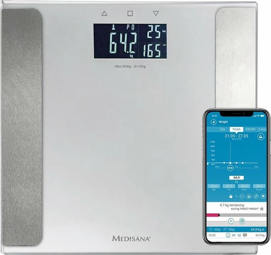In combinatie met de door Medisana ontwikkelde VitaDock+ App helpt deze weegschaal u om uw gewichtsdoelstellingen op een gezonde wijze te behalen en vormt hiermee een belangrijke begeleiding naar een efficiënter fitnessprogramma.