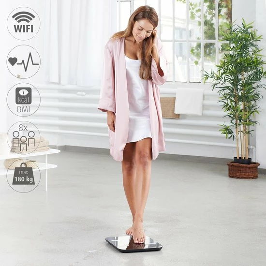 Naast het wegen van je lichaamsgewicht berekent dit model ook jouw MBI, BMR, lichaamsvet en ?vocht en het aandeel spier- en botmassa. Uniek aan dit model is dat ook de hartslag wordt gemeten. Een echte multimeter dus! Al het meetgereedschap in ??n weegschaal om een goed beeld te krijgen van je algehele gezondheidstoestand.