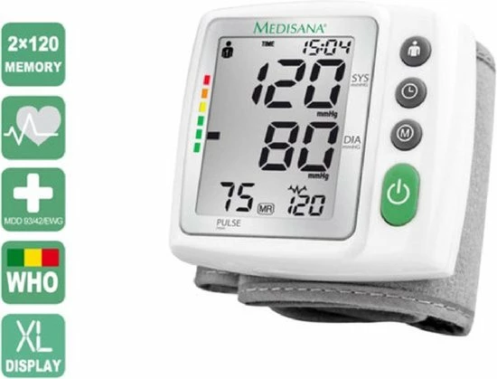 Met de BW 315 polsbloeddrukmeter van Medisana kunt u uw bloeddruk eenvoudig en snel controleren, ook onderweg, thuis, of bijvoorbeeld op kantoor.