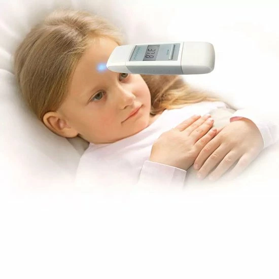 Meet de lichaamstemperatuur in het oor en op het voorhoofd door middel van infraroodlicht