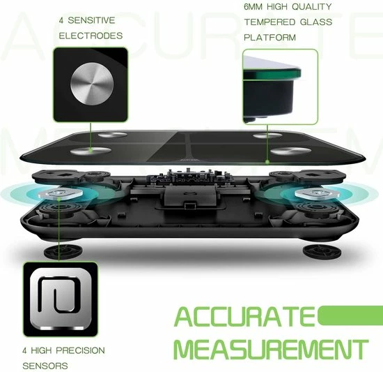 - Smart APP synchroniseert en ondersteunt meerdere gebruikers – De weegschaal is gesynchroniseerd met APPLE HEALTH, GOOGLE FIT en FITBIT APP, ondersteunt onbeperkt aantal gebruikers.