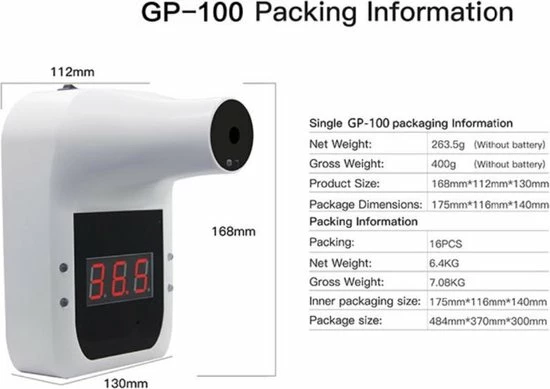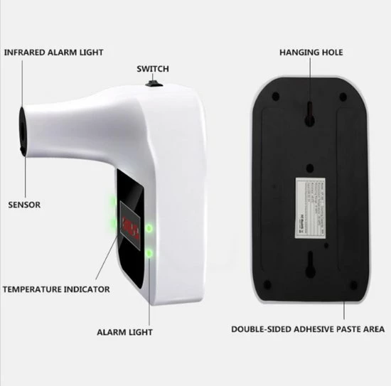 Deze infrarood thermometer is het ideale hulpmiddel. Bij binnenkomst wordt een ieders temparatuur gemeten. Bij koorts gaat er een alarm af. Het apparaat werkt simpel. Personen houden hun voorhoofd voor de snanner en binnen een halve seconde wordt de lichaamspemperatuur gemeten. Het apparaat vergroot hiermee het gevoel van veiligheid binnen uw winkel, bedrijf of instelling.
