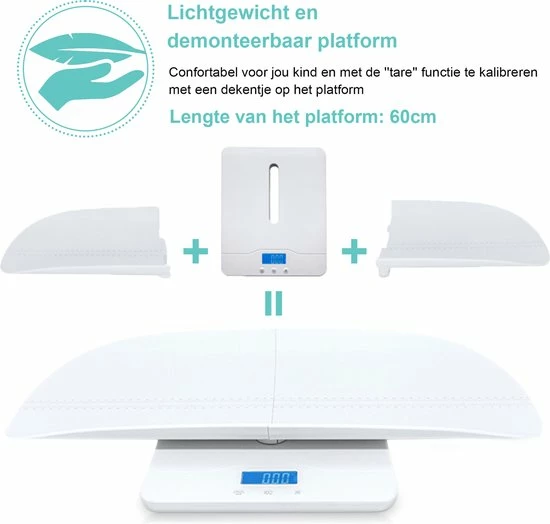 Door de in delen af te breken schaal is het apparaat snel en ruimtebesparend op te bergen en binnen enkele seconden weer klaar voor gebruik. Daarnaast is de weegschaal ook zonder schaal te gebruiken op het moment dat je kind al zelf kan staan. Dit maakt het apparaat duurzaam en ook meteen de eerste echte weegschaal voor je kind. In de app kan je verschillende gebruikers toevoegen waarmee je meerdere kinderen kunt wegen en de resultaten kan opslaan en inzien.