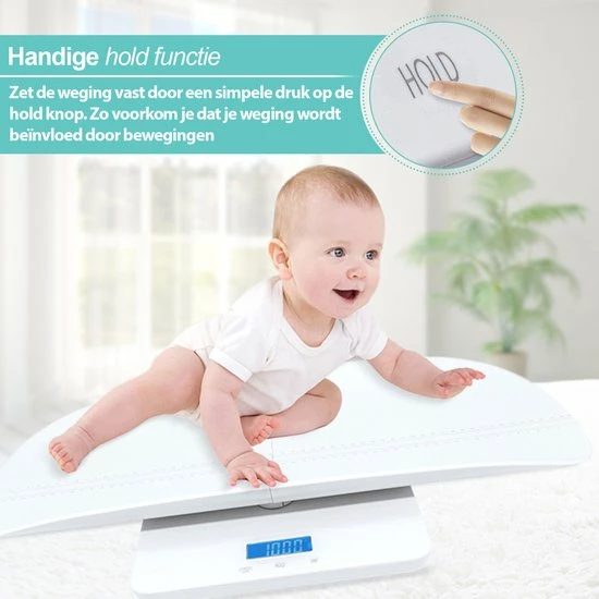 De Miya babyweegschaal maakt het bijhouden van de groei van jouw kindje wel heel gemakkelijk. De weegschaal heeft een ondersteunende app waar de wegingen automatisch worden opgeslagen (bij gebruik van de app) en gemakkelijk de veranderingen in gewicht, lengte en omvang in kaart kan brengen. Met de handige hold functie kan jij de weging vastzetten op een kort moment dat je kindje niet bewegelijk is en met de tare funcite kan jij de weegschaal opnieuw synchroniseren met het lievelingsdekentje op de schaal. Dit alles maakt het in kaart brengen van het gewicht van je kind een stuk gemakkelijker.