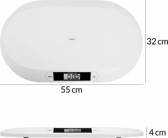 Je kind ligt comfortabel en volledig op een totale lengte van 55 cm; dit verhoogt de nauwkeurigheid van de meting. De weegschaal wordt bewust plat gehouden zodat jouw kind zich veilig kan voelen.
