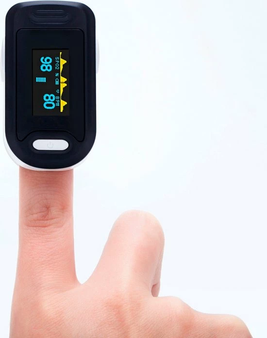 Deze pulse zuurstofmeter kun je eenvoudig en snel het zuurstofgehalte in je bloed vaststellen.