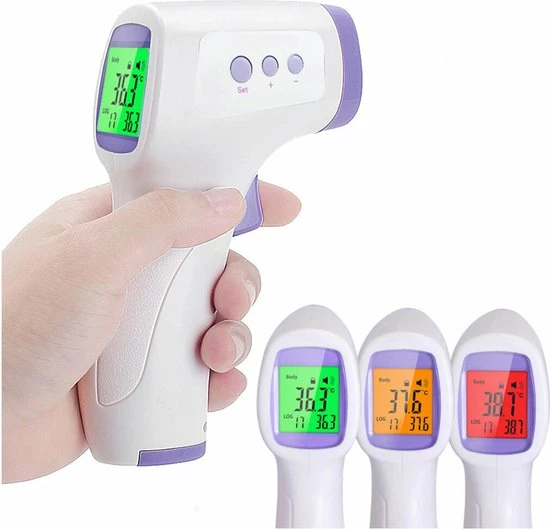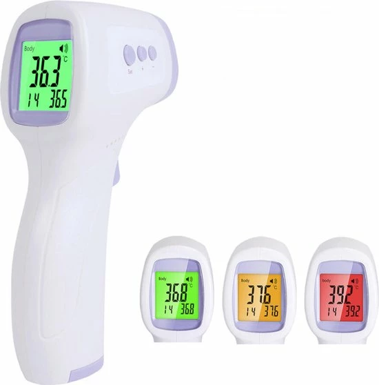 Lees eenvoudig en snel de temperatuur af met de contactloze infraroodthermometer voor thuisgebruik. Deze thermometer leest vanaf het voorhoofd zonder fysiek contact en levert een snelle meting binnen 1 seconde. De displaykleur geeft het koortsniveau aan en maakt een hoorbaar koortsalarm wanneer koorts wordt gedetecteerd.