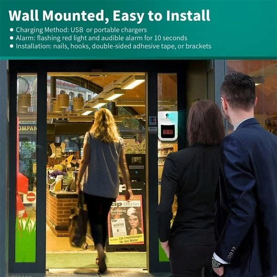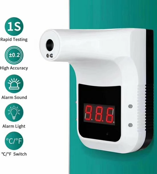 Professionele vol automatische thermometer voor op een NF desinfectiezuil of muurwand inclusief: accu, oplader en montagebevestiging! AVG Goedgekeurd!