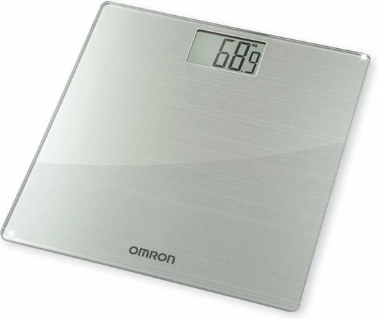 Deze digitale personenweegschaal van OMRON is accuraat, makkelijk te gebruiken en heeft een stijlvol, slank ontwerp dat slechts 1,8 cm hoog is.