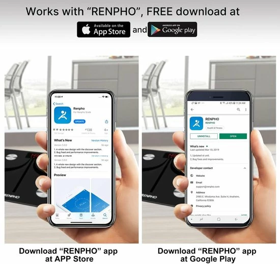 - Slimme app synchroniseert met fitness-app : Heb al miljoenen gelukkige wereldwijde gebruikers, de renpho-app synchroniseert met Samsung Health, Apple Health, Fitbit, Google Fit en biedt een app voor Apple Watch.